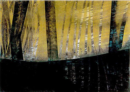 Ich möchte durch freie Kombination der verschiedenen malerischen und druckgrafischen Techniken nach einem impulsiven Beginn das Chaos zu einer Form bringen. Ob die Form dann abstrakt oder gegenständlich wirkt, ist unbedeutend."