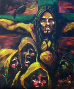 Mit seinen provozierenden Bildern will er den Betrachter in die Auseinandersetzung einbeziehen. Andreas Irtel geht es in seinen Bildern nicht um eine harmonische bildhafte Darstellung, sondern um die Vermittlung der Zerrissenheit in existentiellen Fragen.