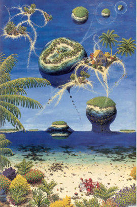 Es entstehen phantasievolle Bilder, die das Weltall oder auch Ozeanien wieder spiegeln. Bilder, die eine entrückte Welt ohne menschliche Bezüge darstellen.