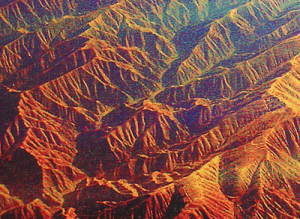 Wer länger hinschaut entdeckt immer neue Einzelheiten und merkt, es handelt sich um Landschaften. Erkennbar werden Täler, Wege, Gebäude oder etwa Eisflächen und Gletscherspalten.